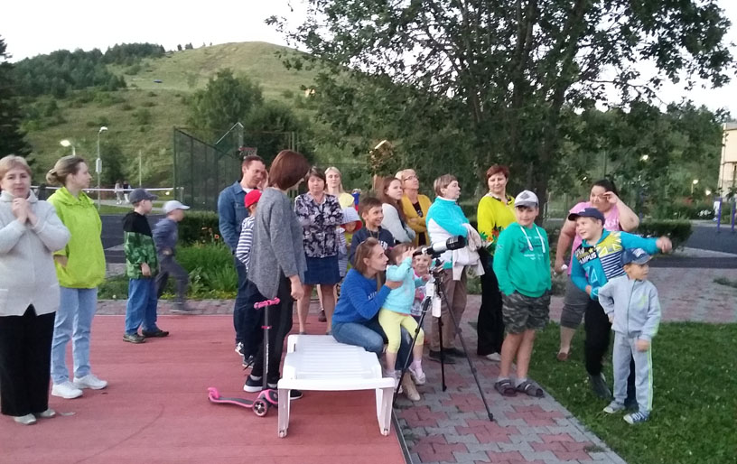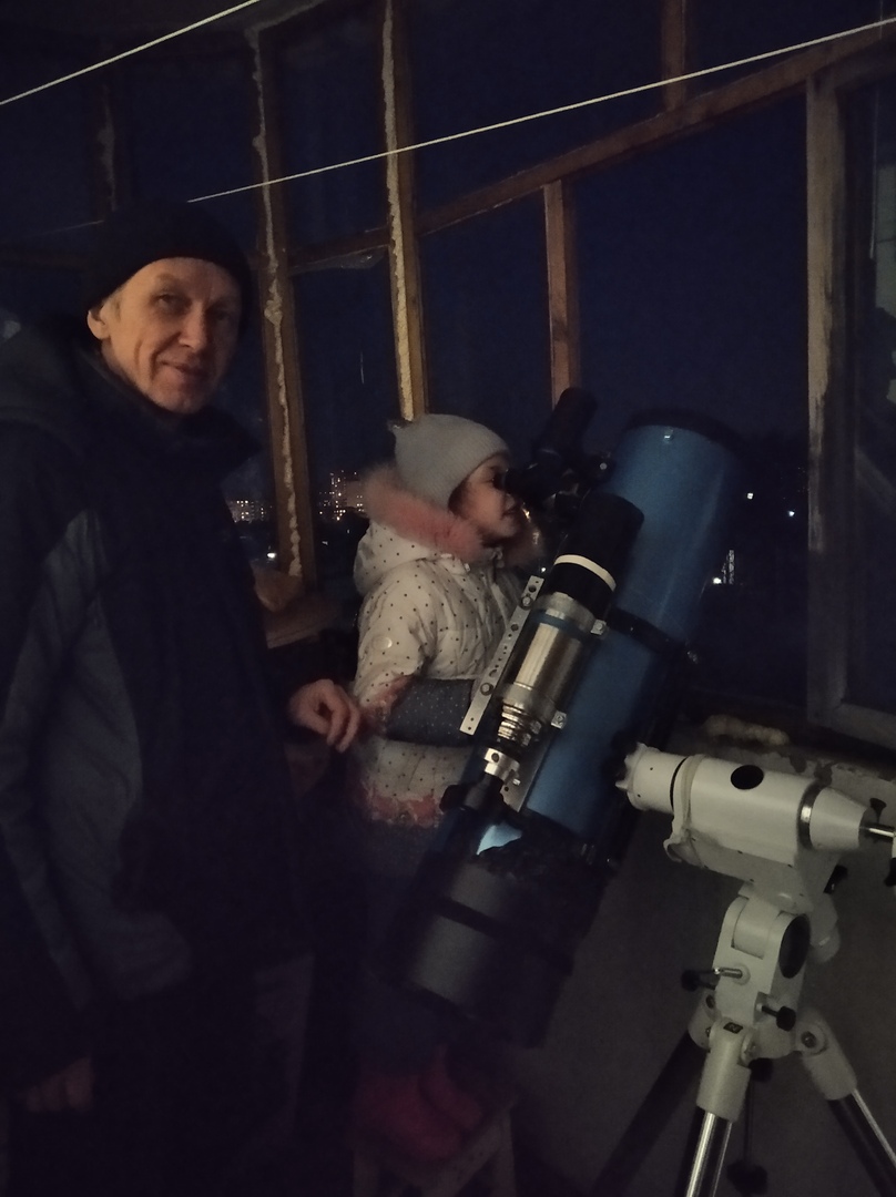 Я вынес свой Sturman 30070, чтобы показать внучкам Луну. Сбежался народ, получилась тротуарка. Несмотря на мелкий телескоп, народ был в восторге. Наблюдали Луну, Юпитер, Сатурн.
