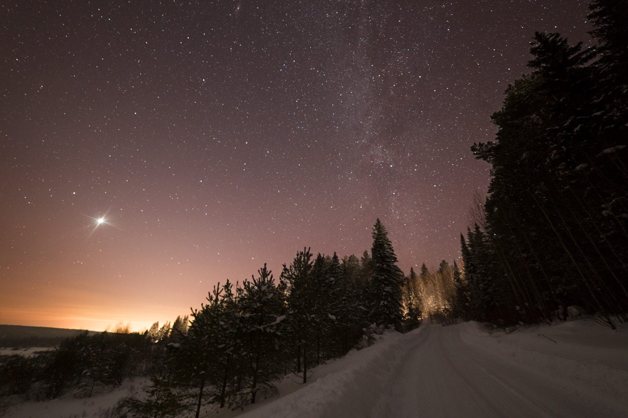 Мы до Юго-Камска не доехали. Ещё не перестала светить Пермь, уже появилась засветка от Юго-Камска. Дальше не поехали.