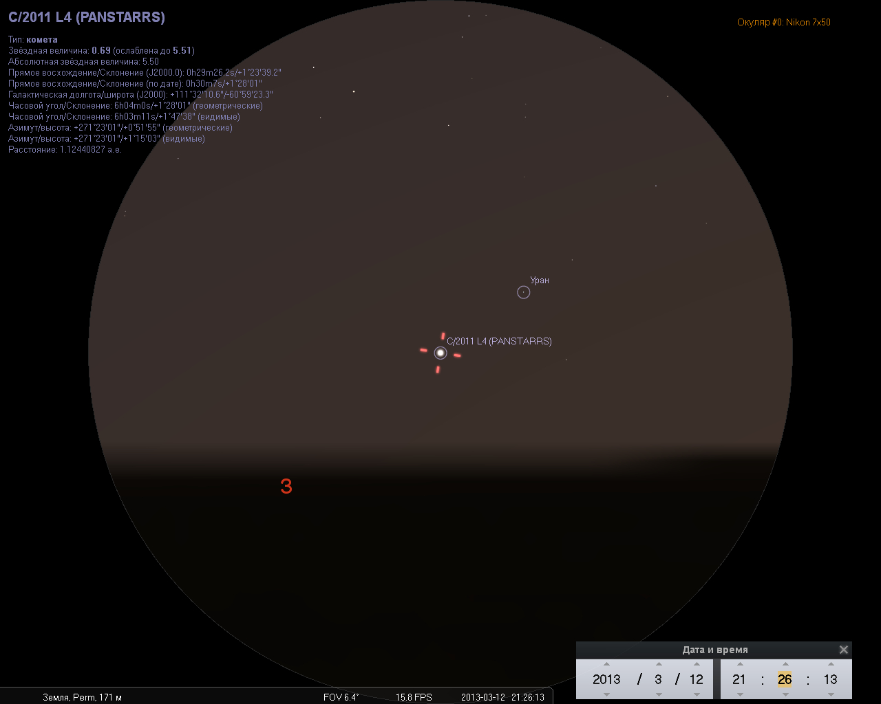 По ней попробовал сориентироваться на местности, а именно будет ли видна эта мартовская комета.