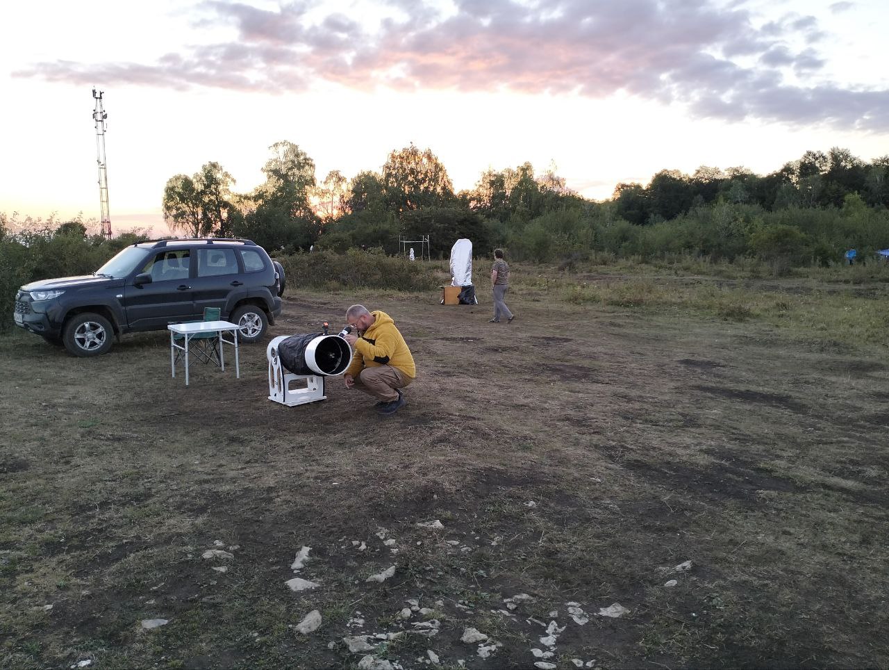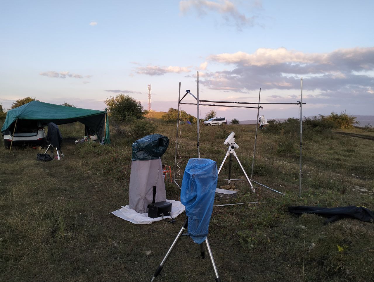 Собрал телескоп, отъюстировал лазерным коррелятором, и поставил ветрозащитную палатку на открытом месте недалеко от палатки Андрея Иванцова из Батайска.