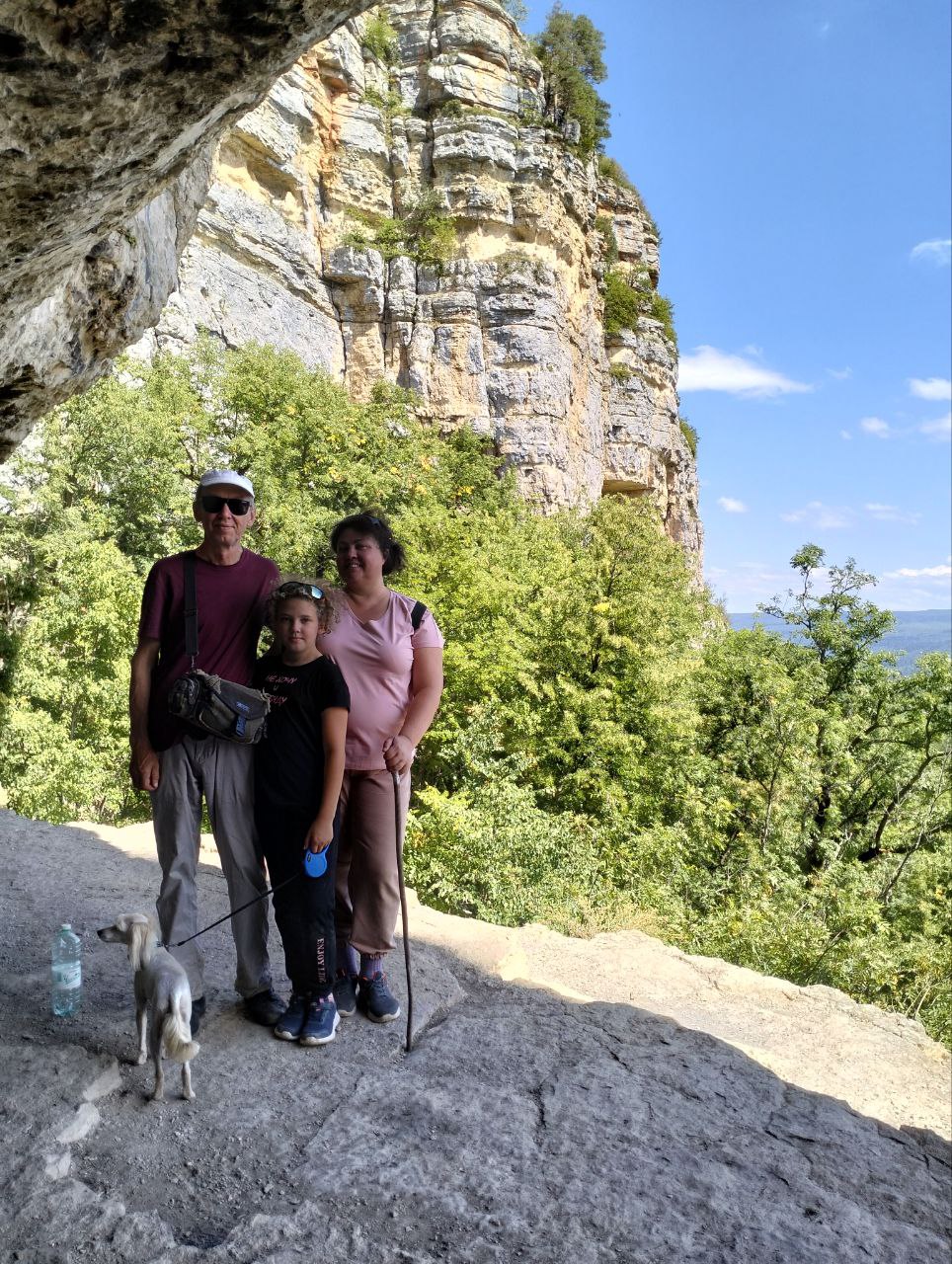 Пошли пешком. В гору шли километра 2 по дороге, потом по скалам карабкались еще метров 300.