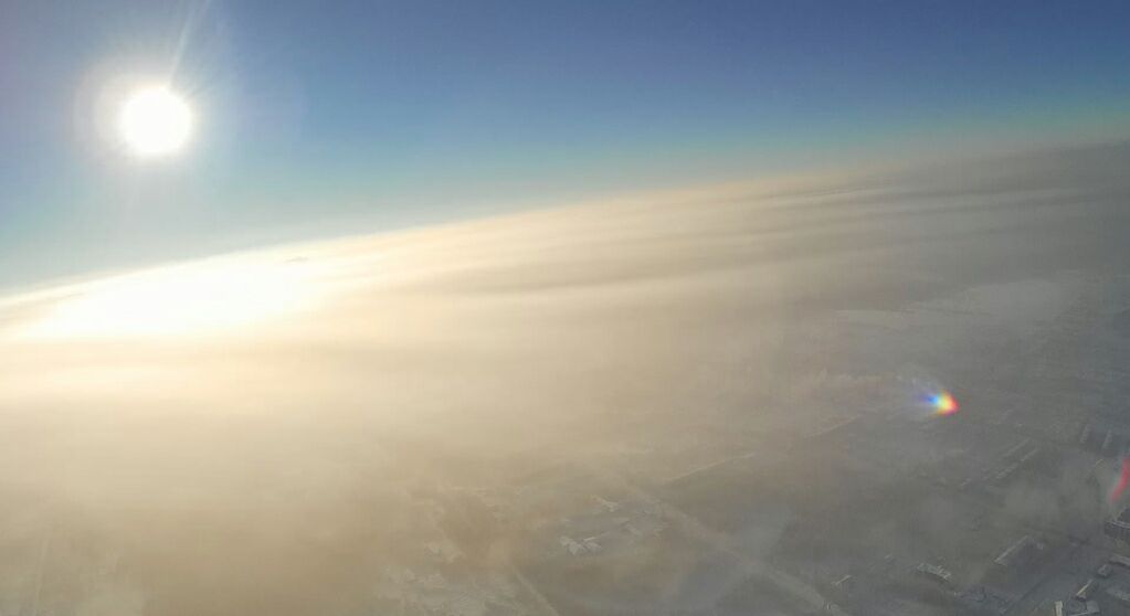 Визуально выглядит как пелена с высотой 1-1.5км до самого горизонта.3 часа назад на метеостанции (19 км) было -36.6 °C, ясно, высокое атмосферное давление, высокая влажность (72%), легкий ветер (2 м/с), дующий с западо-юго-запада. Дым. Горизонтальная видимость 4.2 км.