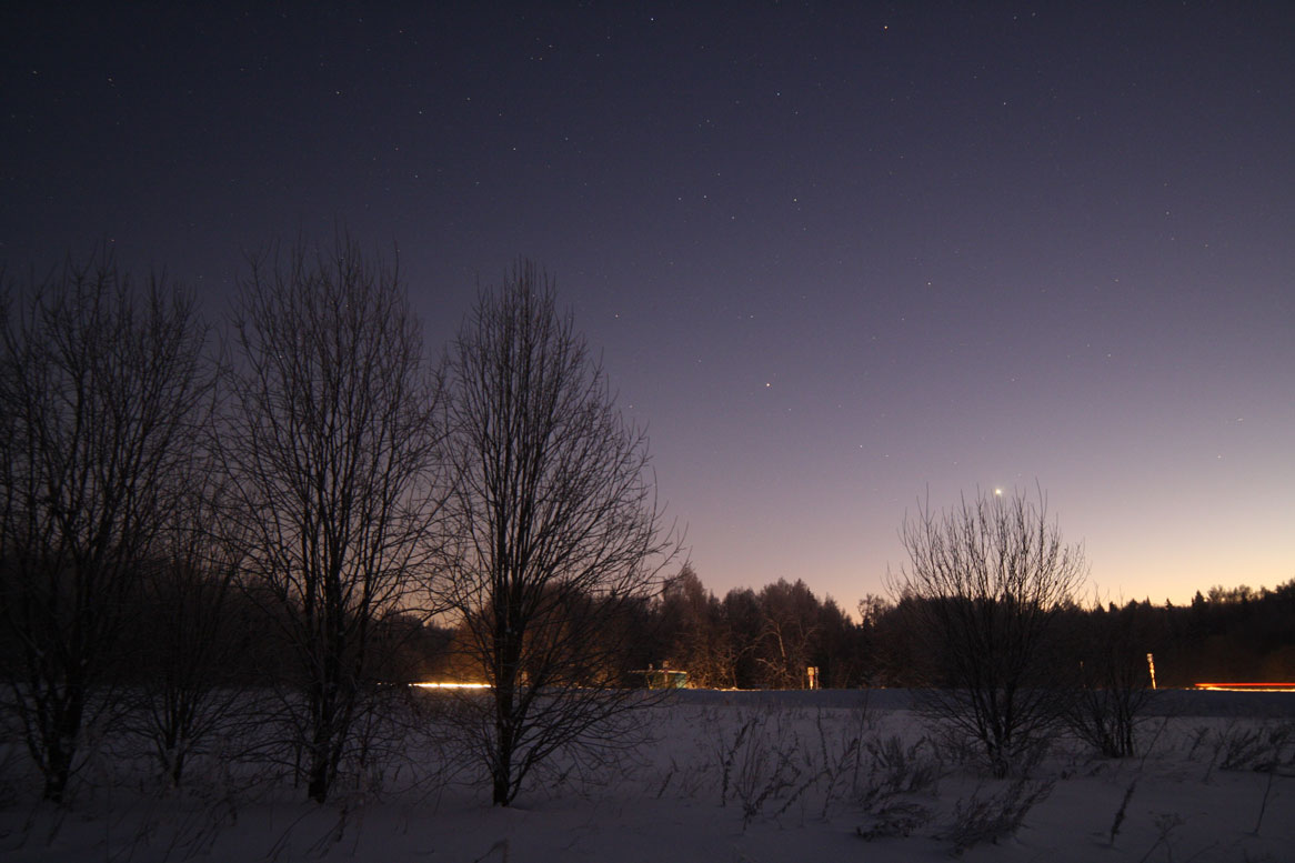 В Комарихе сегодня вечером -36, съездил на пару часов вечером поснимать на 50 мм. Венера и Марс на 14 мм 2.8.