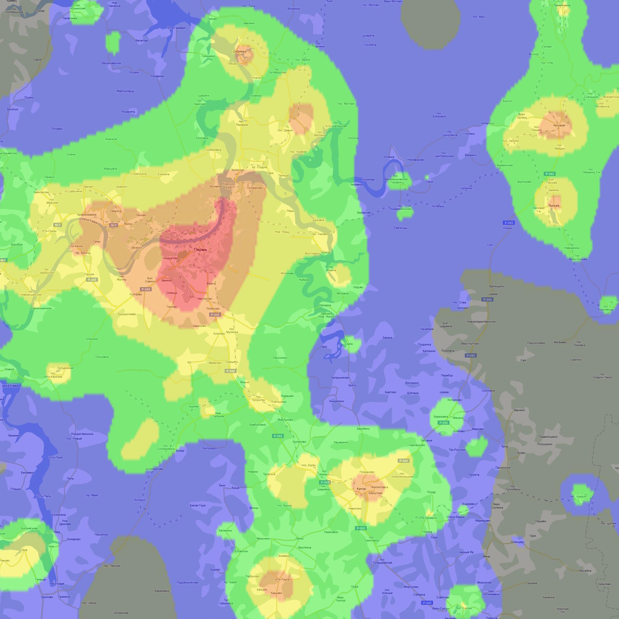 Карта засветки Перми и окрестностей