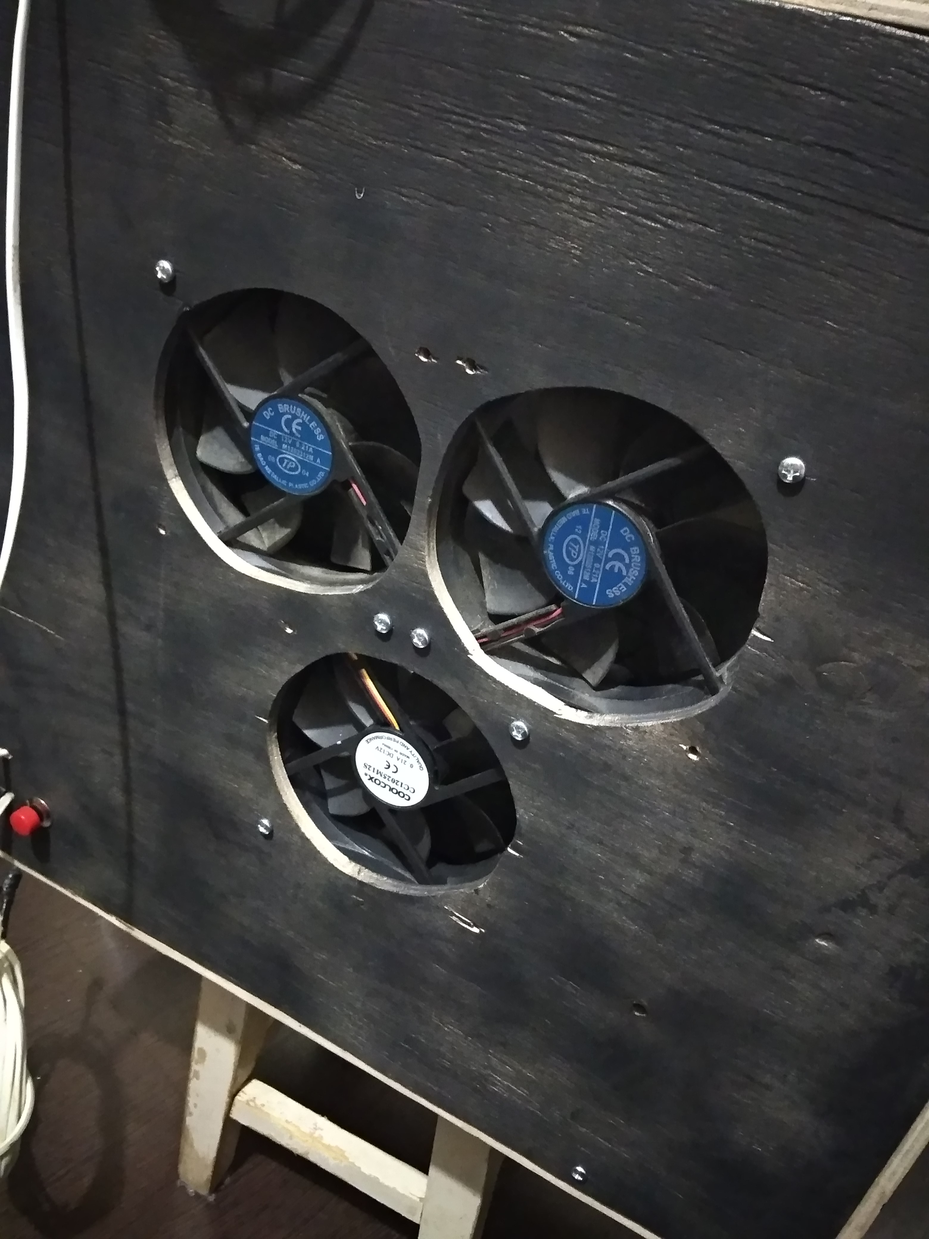 Сделан выдув воздуха сзади тремя вентиляторами и один вентилятор дует на поверхность зеркала.