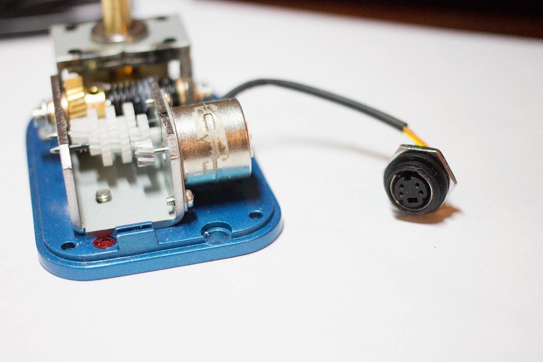 разъем стандартный s-video, я такие использую в своем контроллере монтировки. меня вот что заинтересовало - по фото там всего 2 провода к двигателю? а это совсем даже не шаговый получается. и еще, не нравится мне характер мерцания светодиода пульта, смахивает на короткое замыкание гдето в цепи
