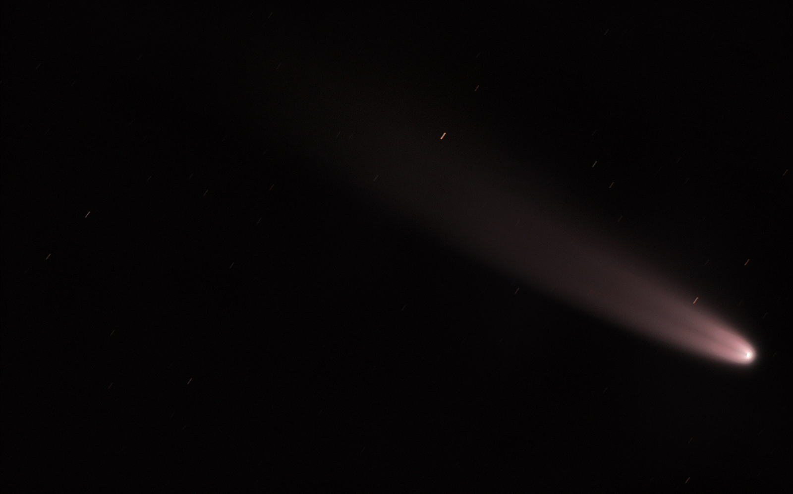 13 июля Комета C/2020 F3 (NEOWISE) , снято на Sky Watcher BKP 2001 HEQ5 SynScan PRO, фотоаппарат Сanon EOS 550Da с кома-корректором Baader Mark III. Сложено 10 кадров по 10 секунд, звездочки смазаны так как полярка была так очень примерно поставлена и комета за это время сместилась относительно звезд .Диаметр ядра кометы около 10 км, расстояние от нас на момент сьемки 126.2 миллиона километров.Исо 200.