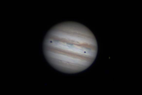 Справа даже спутник месяцем виден!senao писал(а): Две черные точки на поверхности Юпитера это тени от спутников.