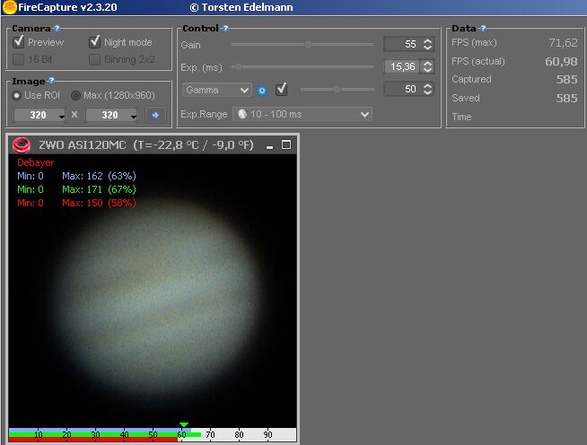 Нет, это его обрезало при сложении, поэтому получился вид полумесяца. Мне приходится писать ролики в разрешении 320х320. Иначе затыкается USB и начинают появляться артефакты на изображении. Тут еще проблема в том что к одному шнурку ( а сам шнурок это 5 USB удлинителей включенных последовательно) сразу подключена монтировка и гид искатель. Поэтому пропускной способности судя по всему начинает не хватать. Надо было брать камеру с интерфейсом USB 3.0.Grossenwolf писал(а):Cправа даже спутник месяцем виден!