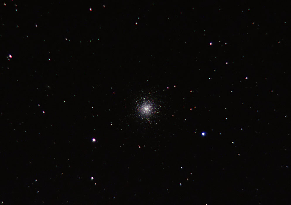 Я одну монтировку сделал из редуктора от измерительной антенны, другую, весом всего 350 граммов, выпилил из фанеры. Монтировка неплохо показала себя не только с мыльницами, на которые была рассчитана, но и с зеркалкой. По крайней мере, при съёмке с объективом Юпитер-37 больше половины кадров получается без смаза. Позднее сделал ещё одну монтировку, помощнее. Она весит 700 граммов и на неё можно установить не только зеркалку, но и небольшой телескоп с мыльницей. Вот пример снимка сделанного с этой монтировки астрографом, который я описал выше. M13 снимал в городе при Луне. Вес телескопа с переходником 800 граммов, вес мыльницы 235 гр. Весь астрограф без треноги весит 1,735 кГ. Монтировка выполнена в настольном исполнении. Если в месте наблюдений есть какой-нибудь столбик, стол, парапет и т. п. то можно обойтись без треноги. Пользоваться такой монтировкой неудобно, но если вес имеет решающее значение, то она может выручить. Я показал эту монтировку своему знакомому и он сделал себе подобную с мотором.