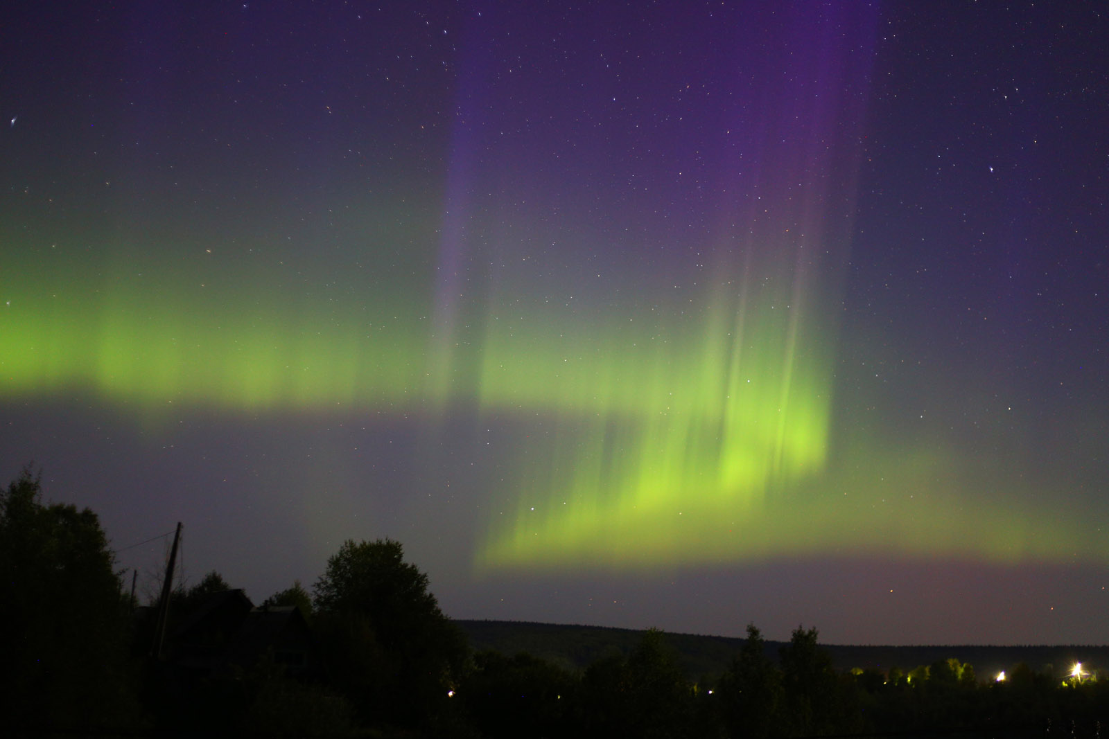 Заметил еще особенность в виде быстрых колебаний в виде волн проходящих по свечению полярного сияния, от горизонта в зенит. Пытался снять видео, но оптику надо иметь более светосильную.