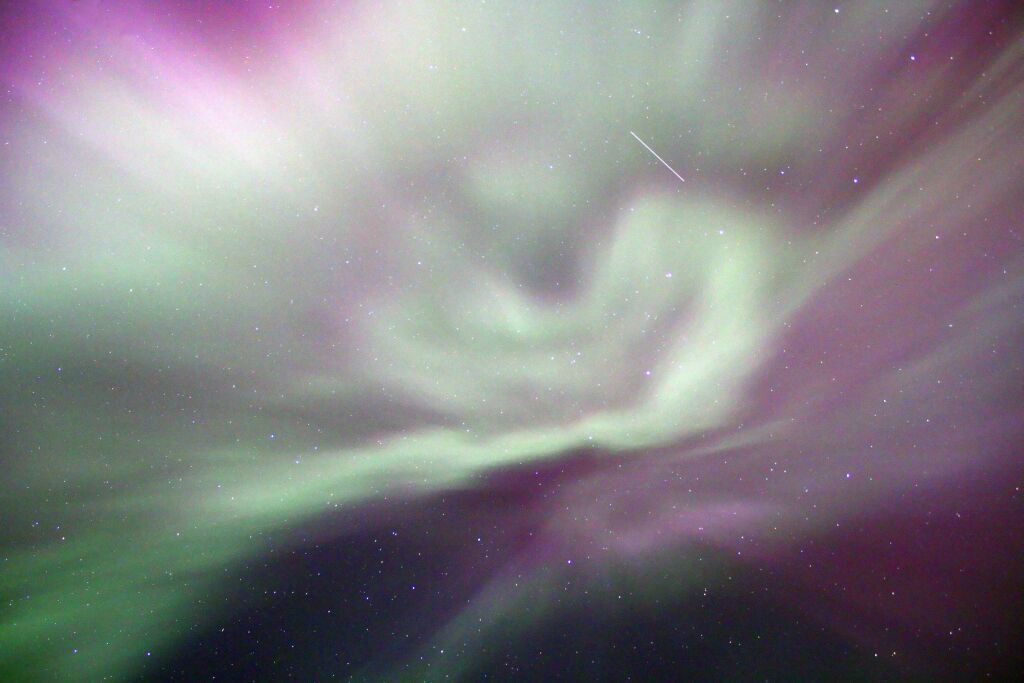 Полярное сияние было столь сильным что его корона наблюдалась прямо в зените.