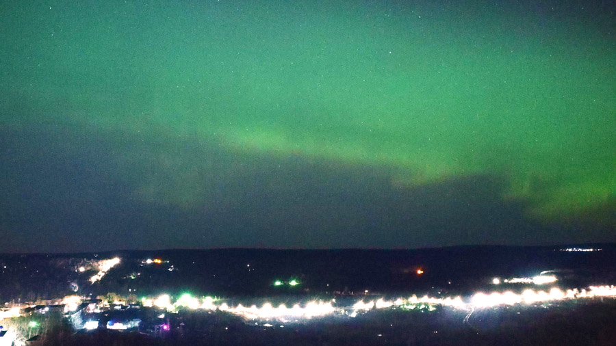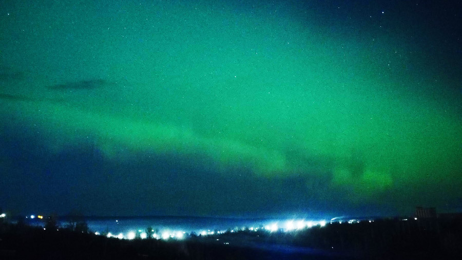 Отлично получилось! Из за облачности что ли такой эффект, полярное не прямыми полосами как обычно, а какими то изгибами.