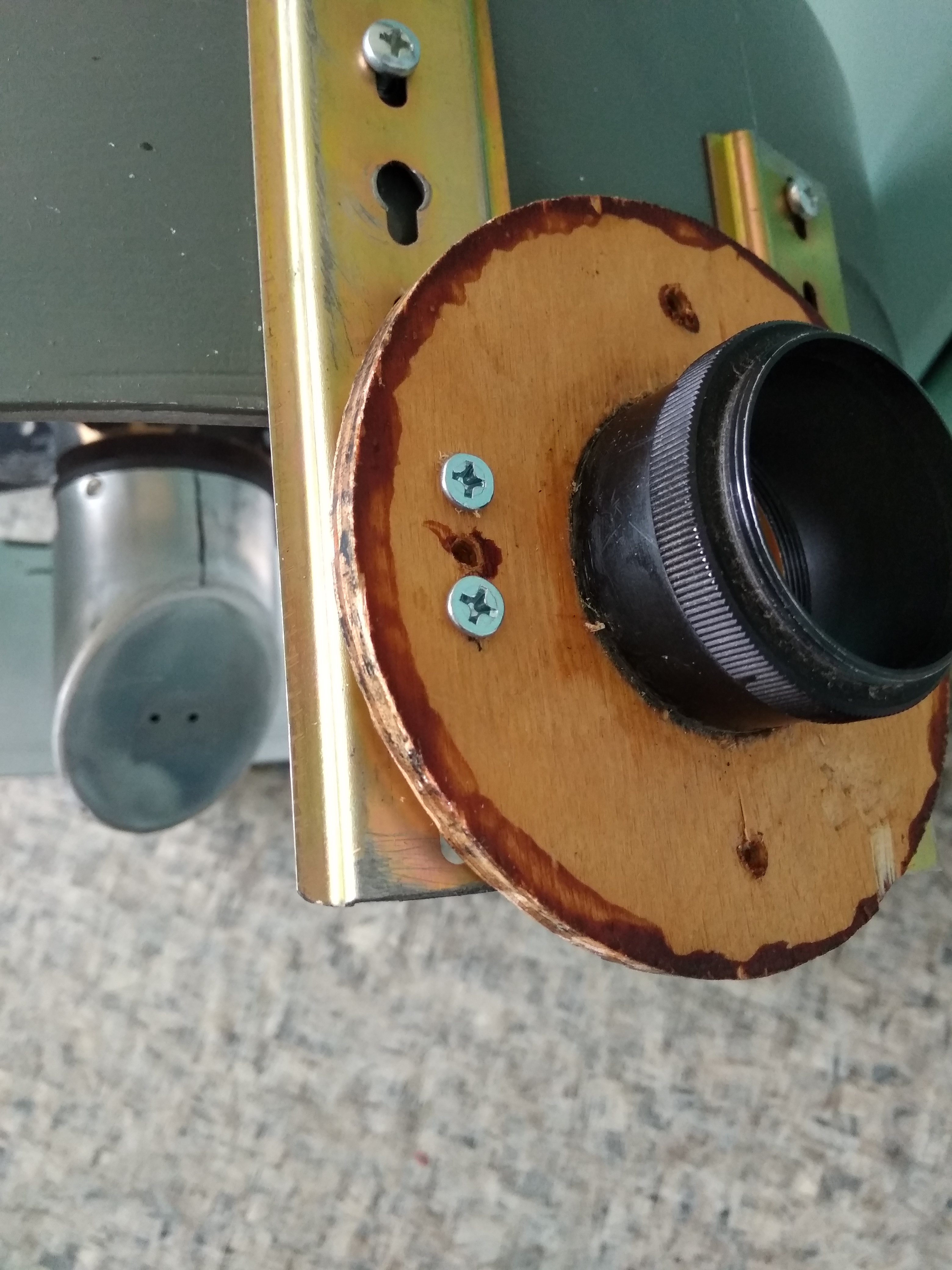 Теперь его размер 55х55х35 см. Оправа опирается на уголки и два болта для юстировки.