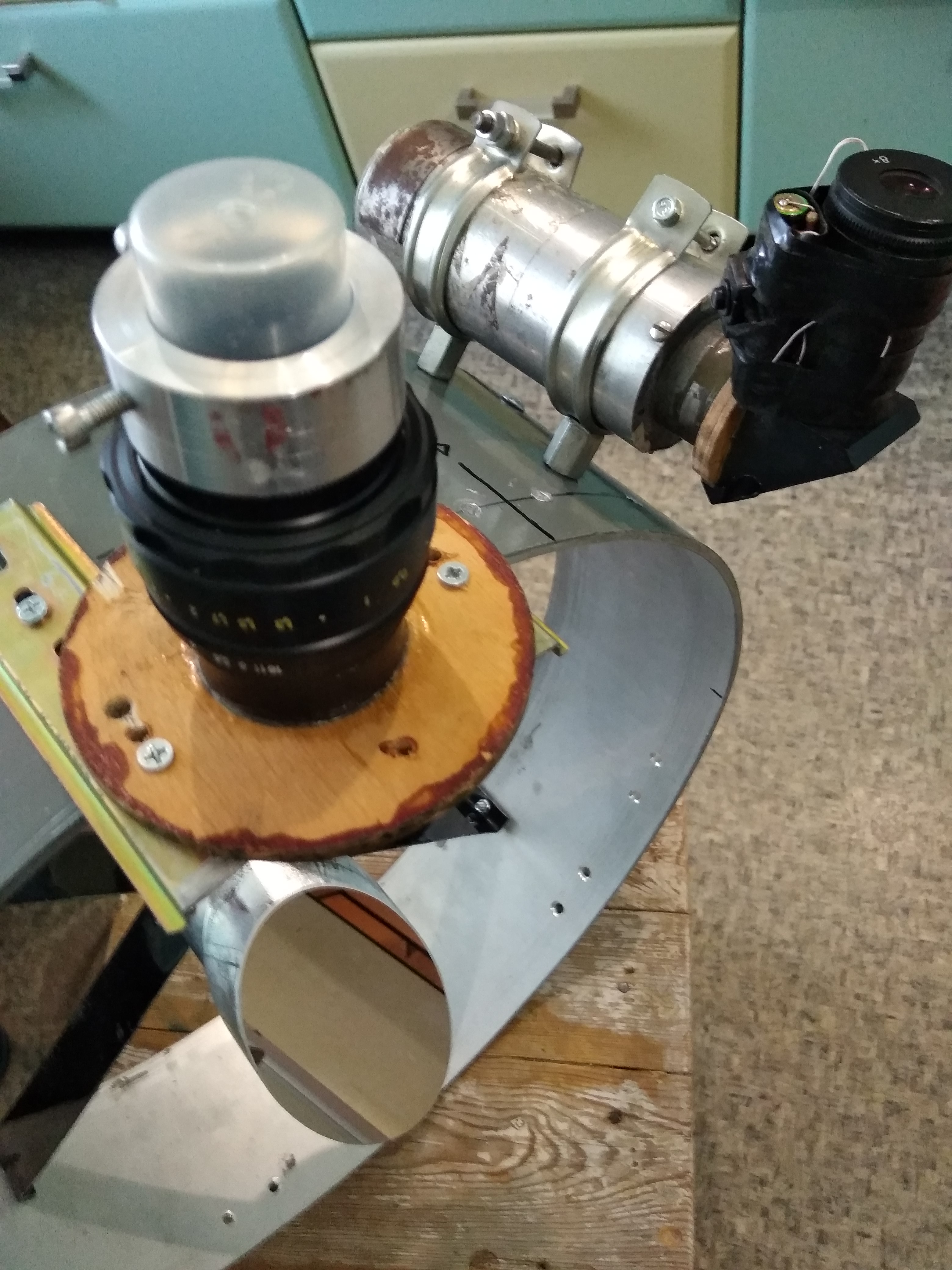 переделать верх: укоротить стакан, вывести фокусер в бок под углом 90, сейчас получилось 45 градусов.