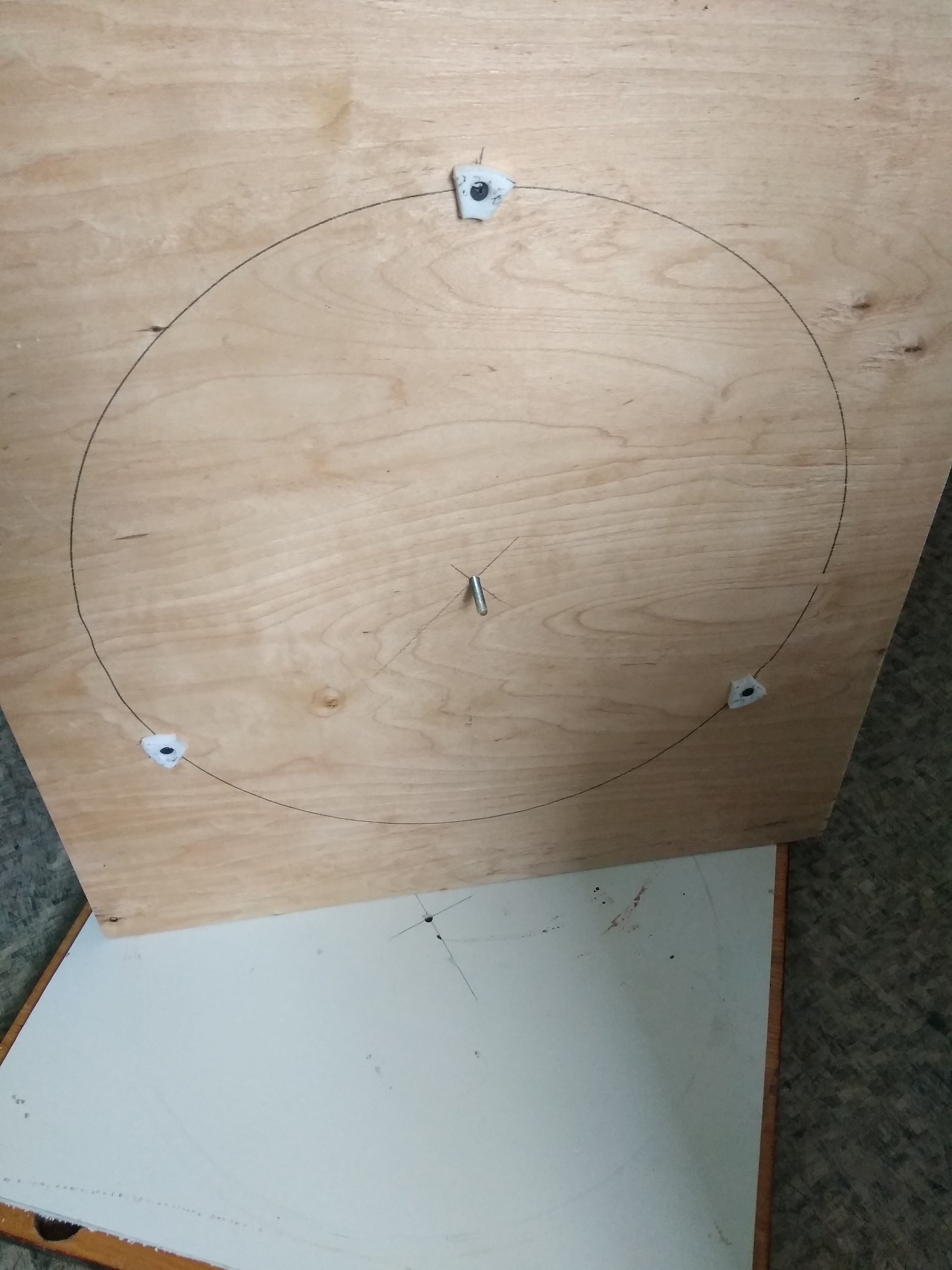 Черновой вариант. Основной горизонтальный подшипник - лист пластика, на который опирается табуретка тремя фторопластовыми опорами.