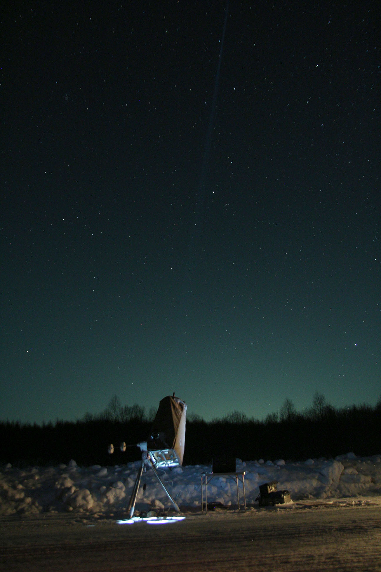Попробую сейчас поснимать сколько смогу. Вентиляцию зеркала в телескопе включил на выдув, что бы попадало меньше снега. Ноутбук закрыл тканью, а то его уже припорошило. Посмотрим что получится