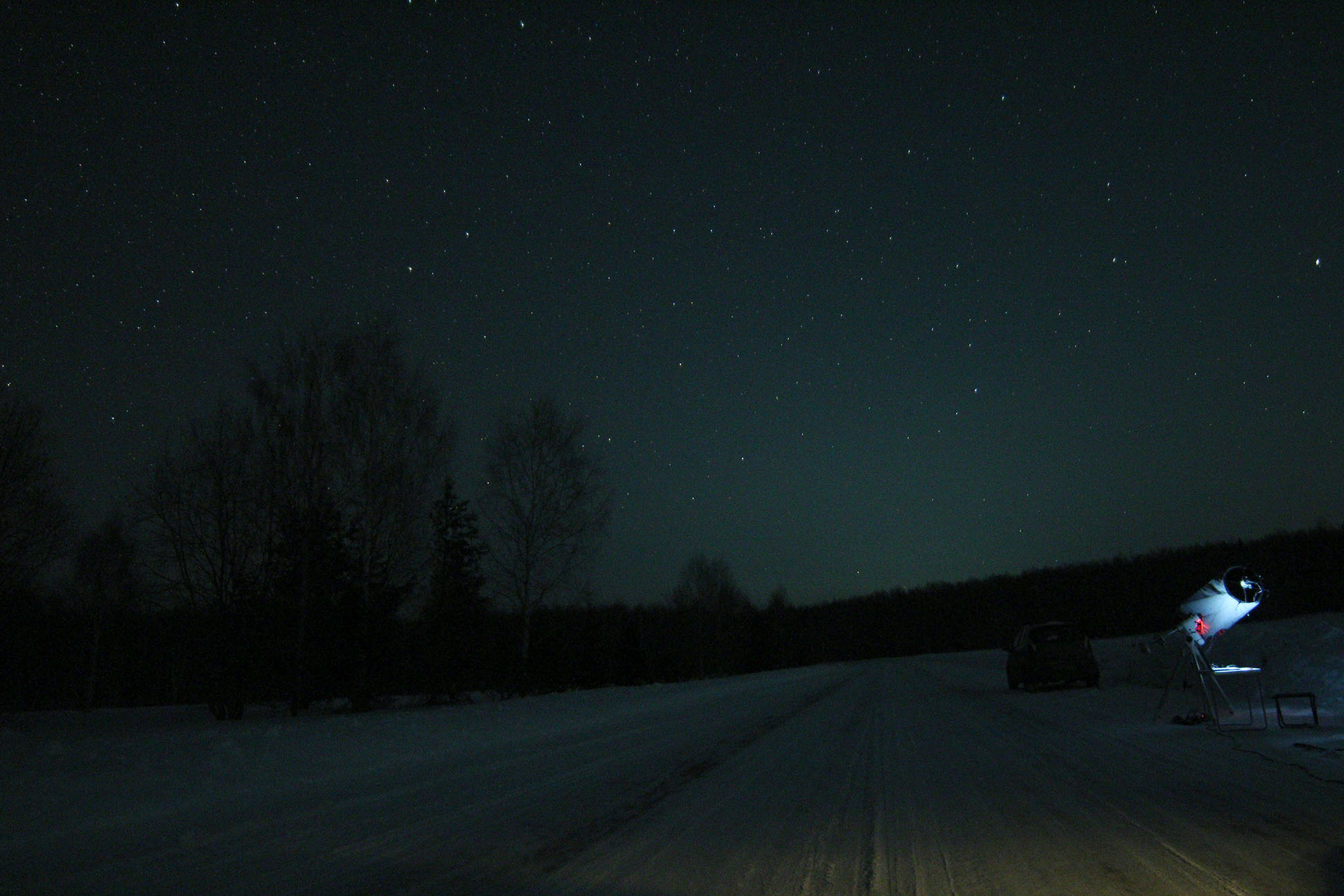 Сделал несколько кадров на canon 650da + Bower 14mm, 2.8, 3 сек 3200 талескоп, как прожектор, при настройке выравнивании по звезде.