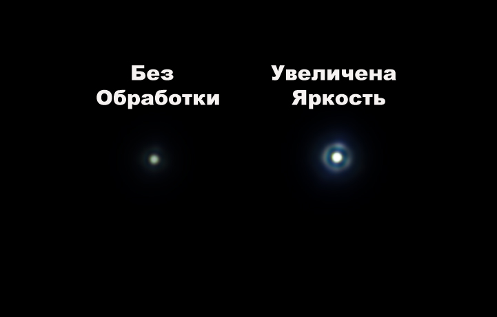 что у кольца бОльшая яркость, а вот звезда слева имеет нормальную яркость относительно кольца.