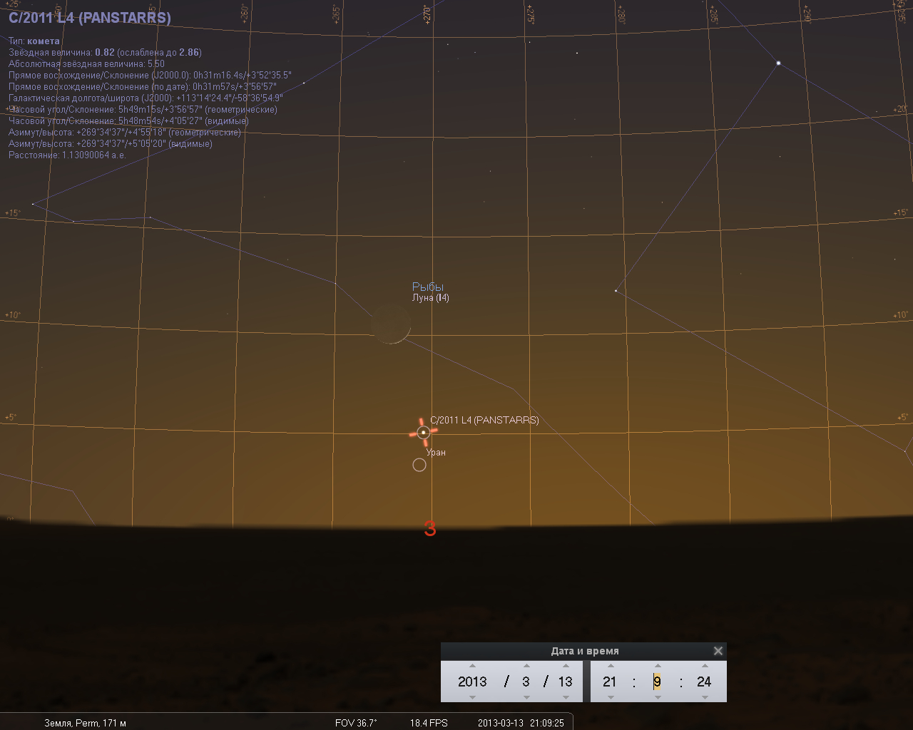 По ней попробовал сориентироваться на местности, а именно будет ли видна эта мартовская комета.