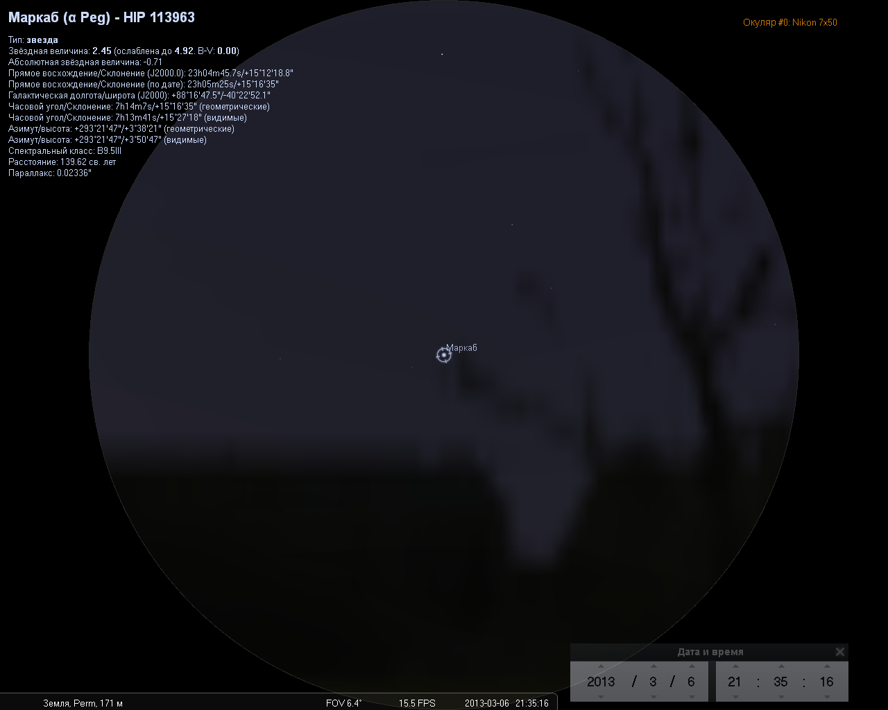 Вчера наблюдал звезду Маркаб (Пегас) на поле Бахаревки с 21-21:35.