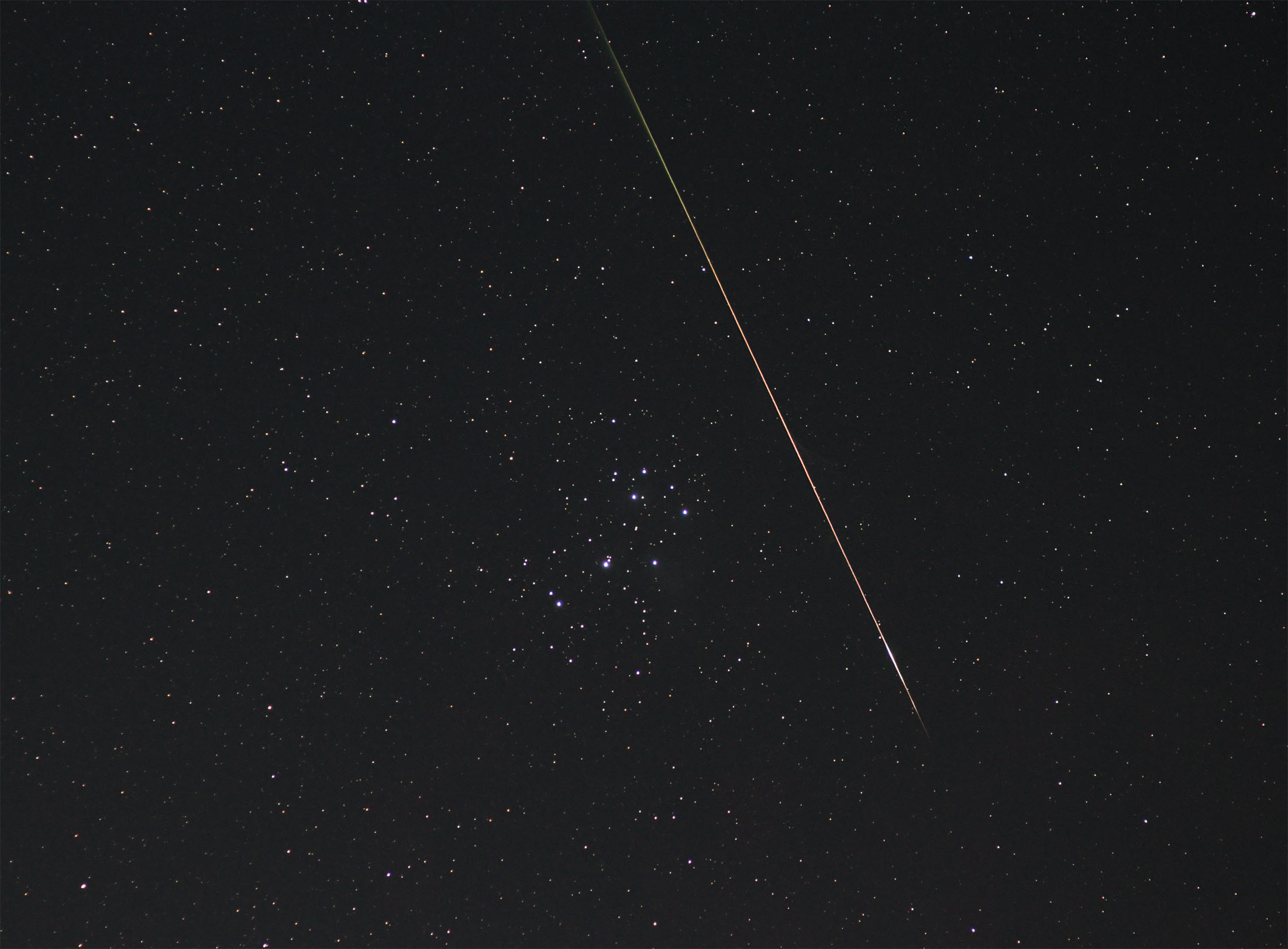 Мне тоже ночь понравилась. Фотографировал в Лукоморье. Мне доступна была только часть неба, но 11 метеоров я насчитал. В кадры попалось несколько слабых метеоров и один яркий.