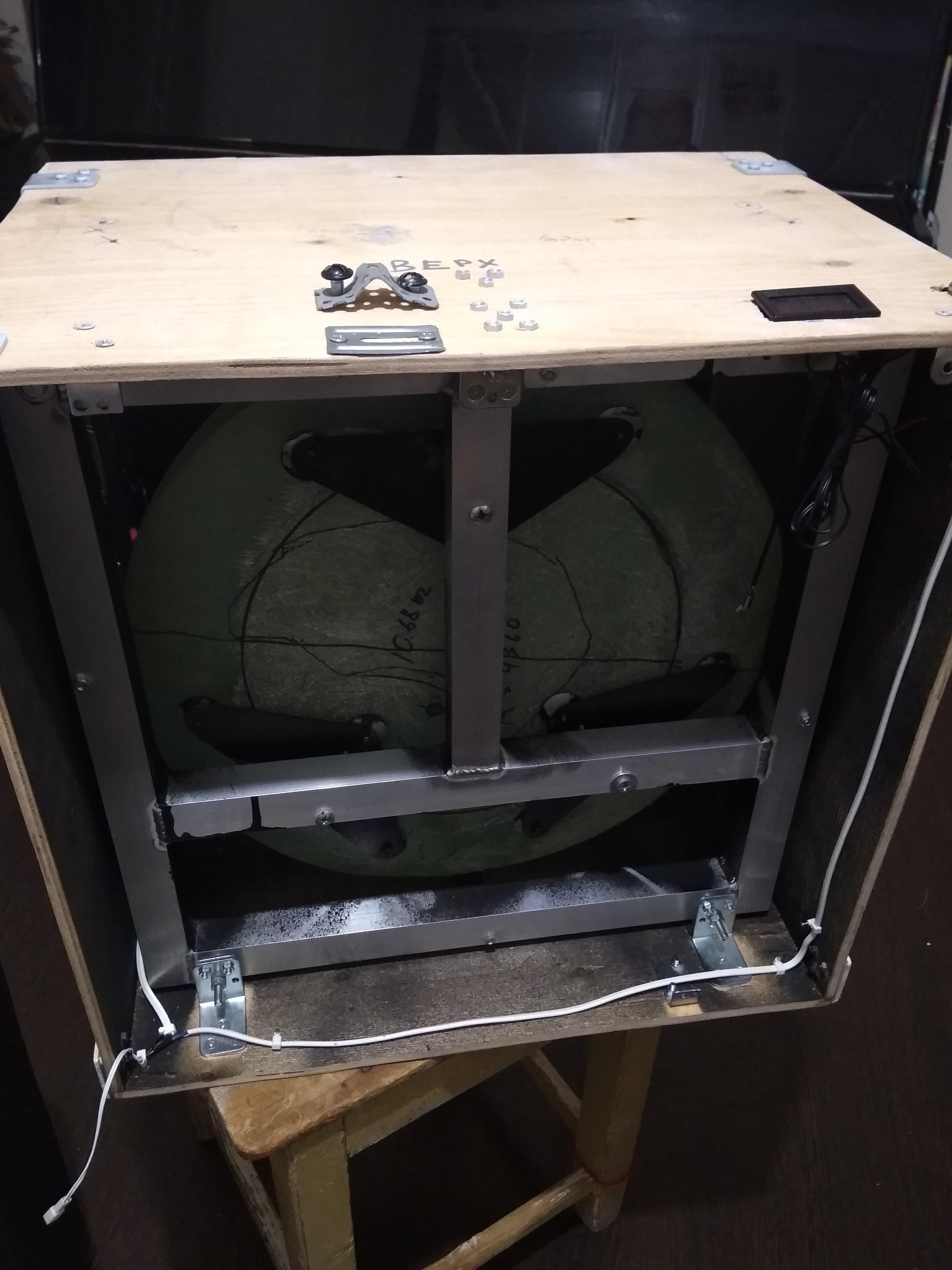 Сделан выдув воздуха сзади тремя вентиляторами и один вентилятор дует на поверхность зеркала.
