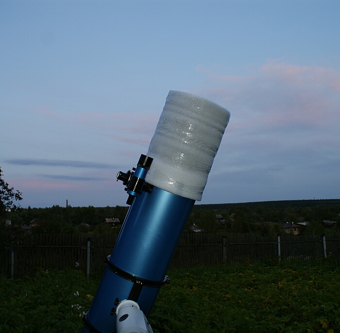 В общем что я скажу по противороснику, эффект нулевой, вторичка запотела через два часа, но ГЗ по крайней мере осталось чистым. Противоросник и так получился монстрообразный, я штангелем измерил почти 50см и все равно толку ноль :grief: Влажность в месте наблюдений просто невообразимая и надо отметить если ночь ясная ветра нет вообще, по крайней мере исходя из моих наблюдений обратного пока не было. Может быть это еще влияет на повышенное образование конденсата? Одним словом в моем случае поможет только электрообогрев. На данный момент сделал подогрев искателя, объектива и окулярной части, иначе пользоваться им тоже невозможно. Протирание салфеткой дает эффект только на несколько минут. Сами нагревательные элементы выполнены из тонкой нихромовой проволоки 0,1мм в диаметре в лаковой изоляции в виде отрезков с сопротивлением 115 Ом намотанных на искатель. При питании 12в они рассеивают мощность около одного вата. Как показали натуральные испытания этого оказалось вполне достаточно. Согласно показаниям пирометра при температуре корпуса искателя +6 место нагрева имело температуру +10 а сами линзы +8 градусов. Также в настоящий момент я сделал нагреватель для вторичного зеркала из 16 смд резисторов по 33 Ом, но пока в деле не испытал. Гугл кстати по запросу "подогрев вторичного зеркала" практически не дает никакой информации, по всей видимости большинству пользователей хватает противоросников. Попалась только одна тема, там автор наклеил термоклеем на вторичку монстрообразные керамические сопротивления, они нагревались у него до +32, ну считайте при таких условиях зеркало с очень большой вероятностью поведет винтом :smile: Даже сам факт приклеивания резисторов на достаточно жесткий термоклей уже скорее всего исказит изображение.