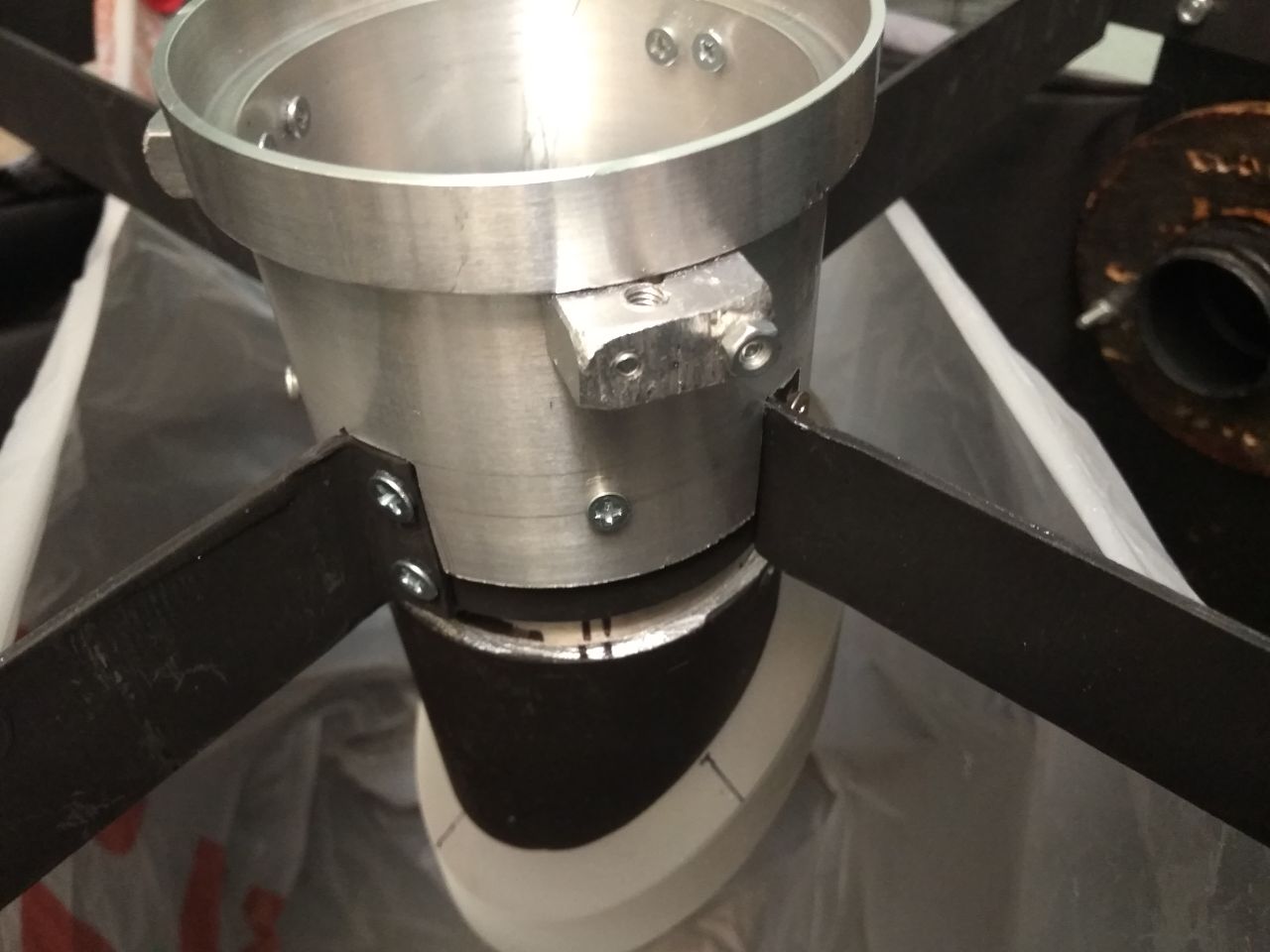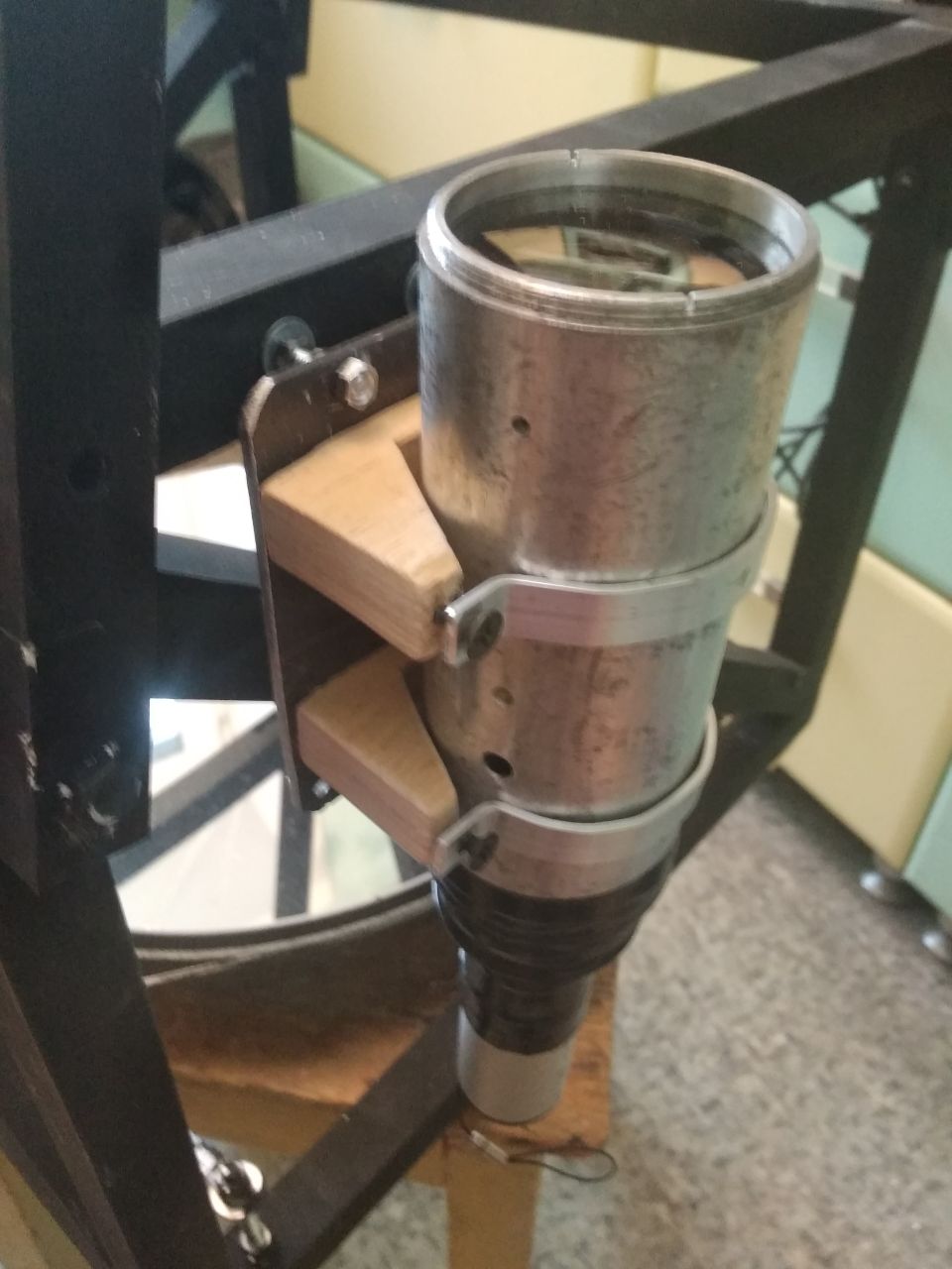 Сделали мне гильзу переходник из центрального кольца паука в фокусер. Я прикрутил на нее уши для юстировки фокусера и собрал все вместе. Расстояние от края кольца до фокальной плоскости 17 см.