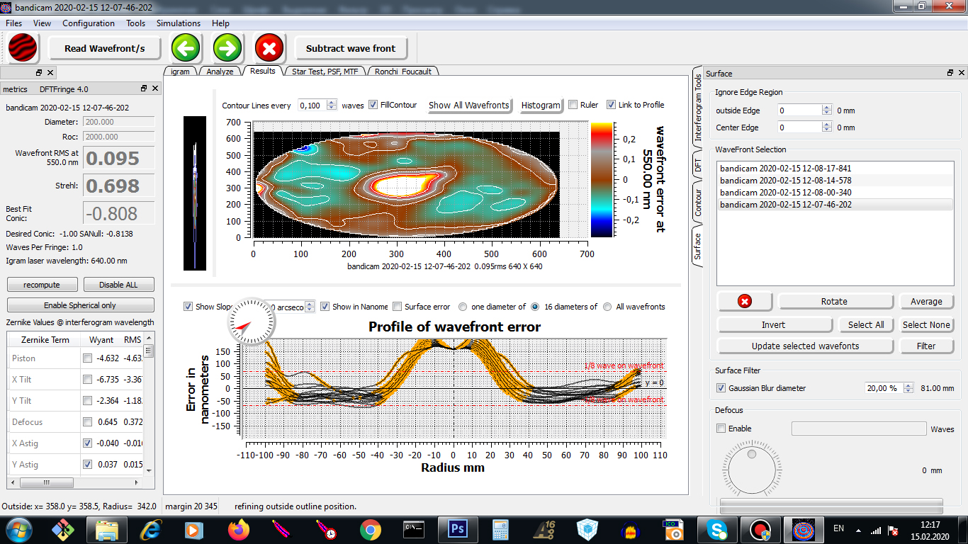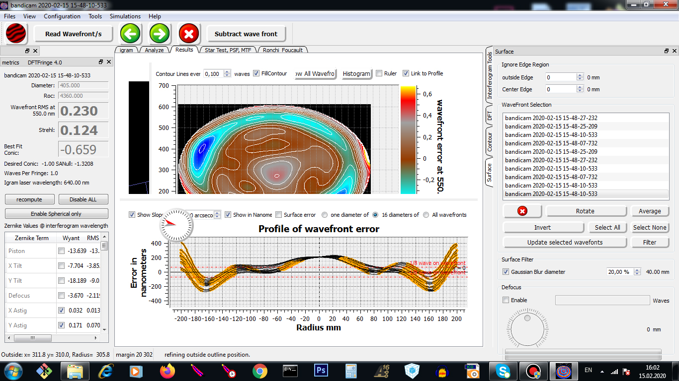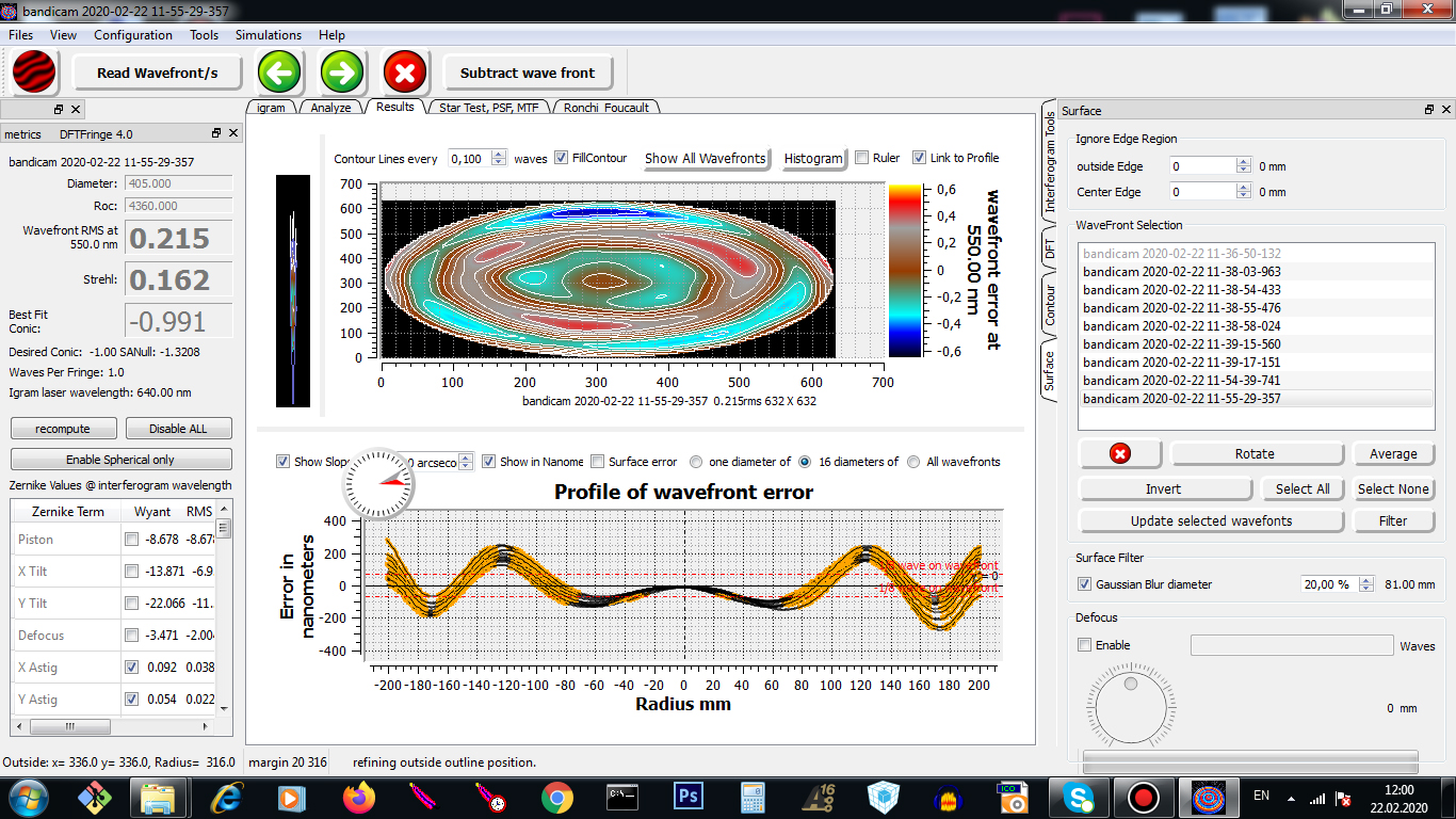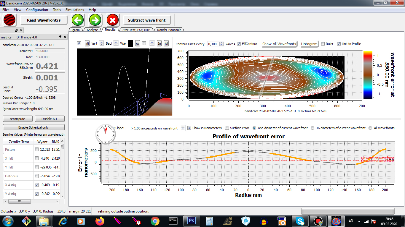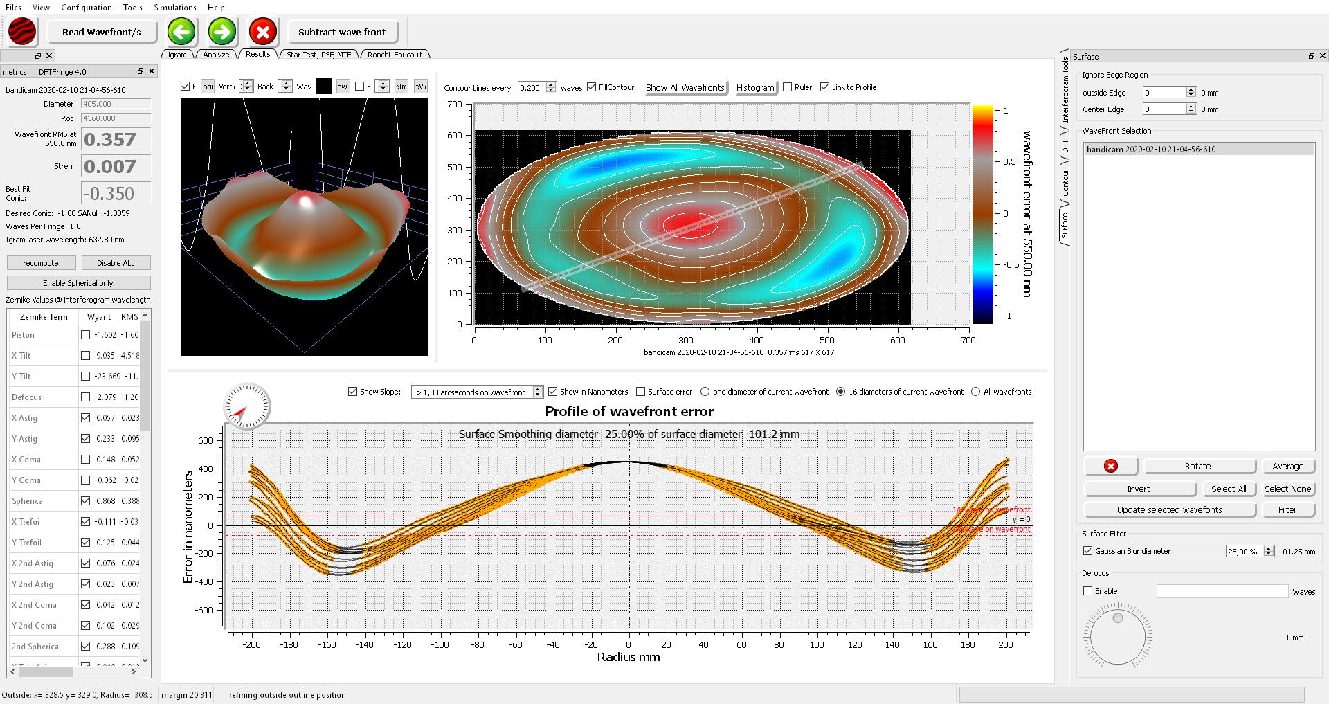 Кстати интересно было бы прогнать заводское зеркало на интерферометре и посмотреть теневую картинку. Плюс к этому на интерферометре сделать несколько замеров, проворачивая зеркало. Тем самым узнать насколько замеры коррелируются между собой и не вносит ли интерферометр Баса ошибку.