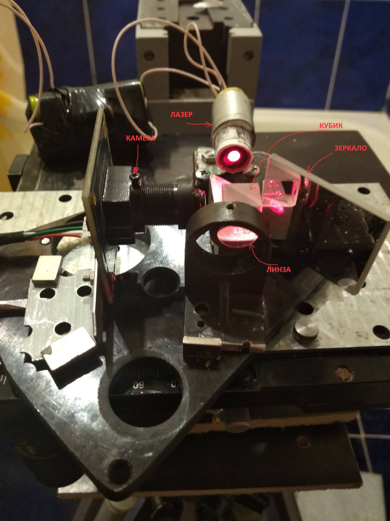 Зеркало и лазер кроме того имеют подстройку угла наклона с помощью винтов.