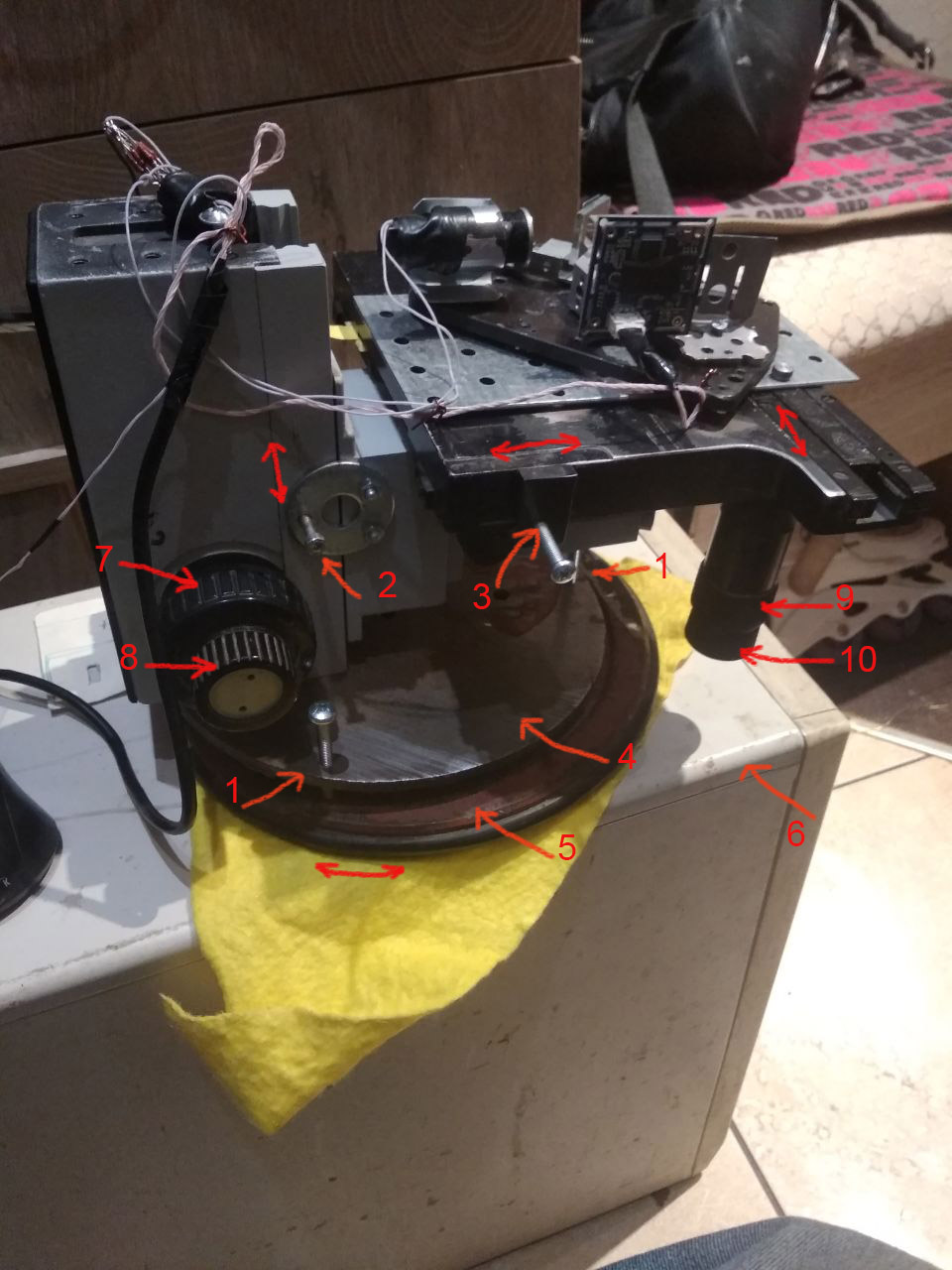 Между 5 и 6 вискозная салфетка. На ней прибор плавно может поворачиваться вокруг вертикальной оси и