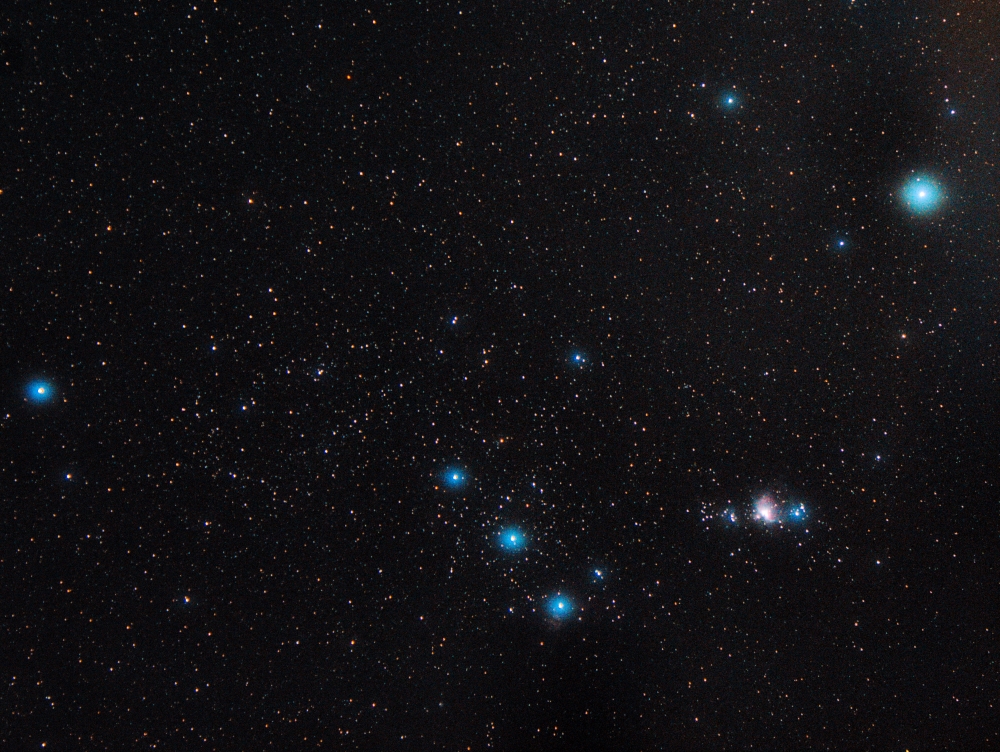 Вчера снимал 3 раза пришлось аккумулятор перезаряжать хватало на 45-50 минут не более но тем не менее и так М42 ,кроме того видно Пламя и намеки на Коня,15 минут из 3 кадров исо 800,фокусное 55 фотоаппарат тот же обьектив видимо запотел сколько то поэтому звезды так раздуло