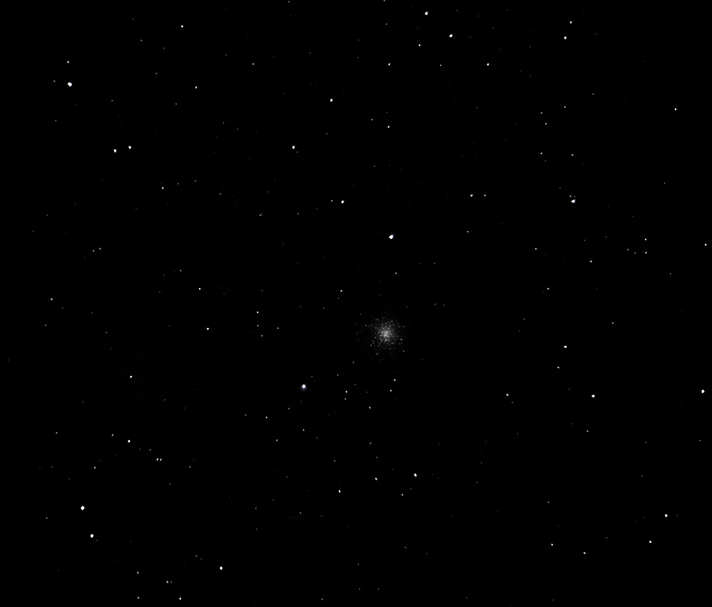 Опробовал по М13 "суперрефрактор"-игрушку. Из-за засветки снимал на ISO200. 13х32 сек. С18 мм окуляром хроматизм не заметен. Порадовало то, что изображение хорошее по всему полю. На его качество не повлияли ни низкая температура (-14), ни падение телескопа с метровой высоты.
