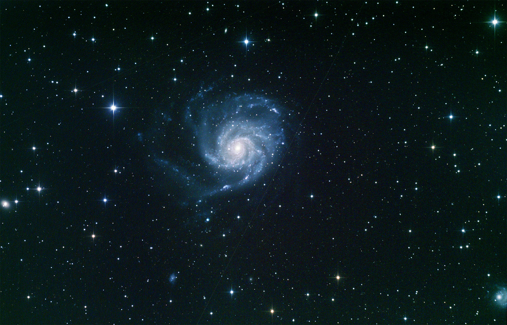 Обработал М101 от ночи 6-7 апреля. Снимал на монтировке Viхеn GP2 с системой TS-3. Canon 550D, ISO 1600, SW 150/750, гид искатель 8х50 с камерой QHY5, 31 кадр по 4 минуты, дарков/оффсетов/флетов по 30. Калибровка IRIS, сложение FITStacker, PS.