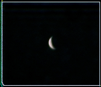 Как есть, серпик видно и отлично, при такой фазе детали на планете не вытащить. Кроп 100%. Исходник и что получилось. Камера ужасно лагает с цветом, поэтому фон неба увело в пурпурный.