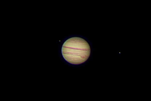 Позавчерашний Юпитер. Телескоп DeepSky 90/700, линза Барлоу 2х, Canon 600Da. 500 кадров из 8226.