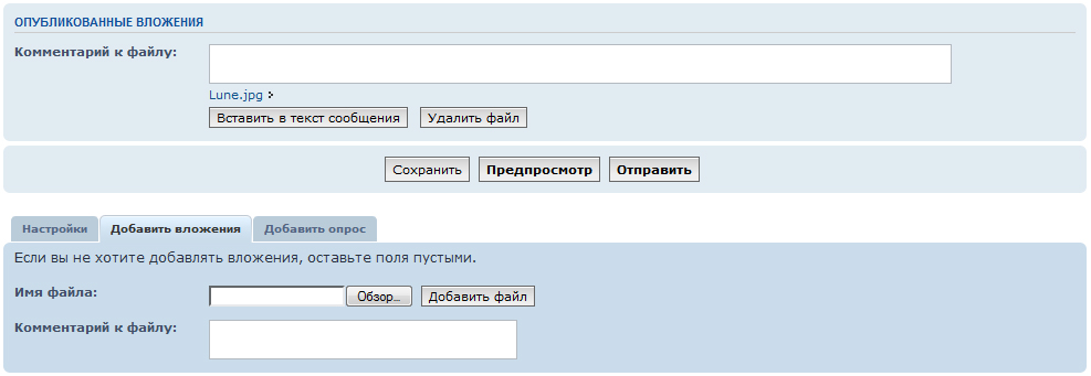 После того, как файл был загружен, появится дополнительный блок "Опубликованные вложения".