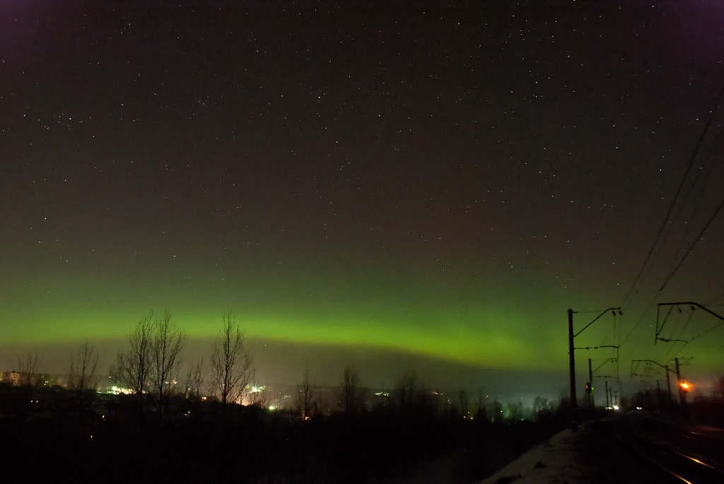 11го оно выглядело в виде статичной слабо меняющейся полосы от горизонта до горизонта, 12го порадовало динамичными всполохами.