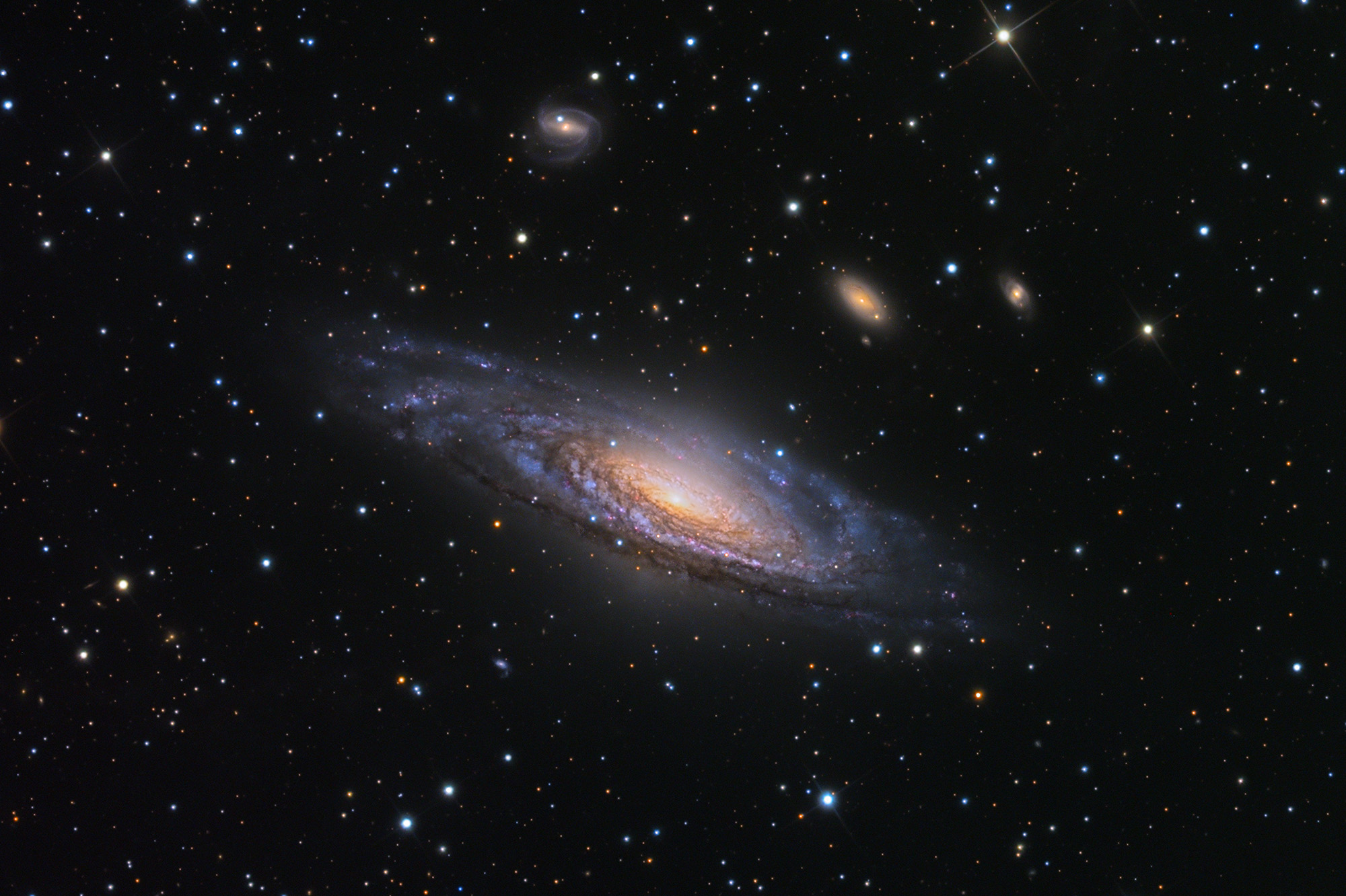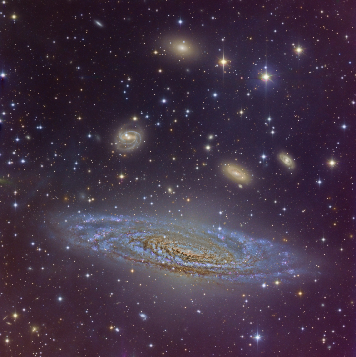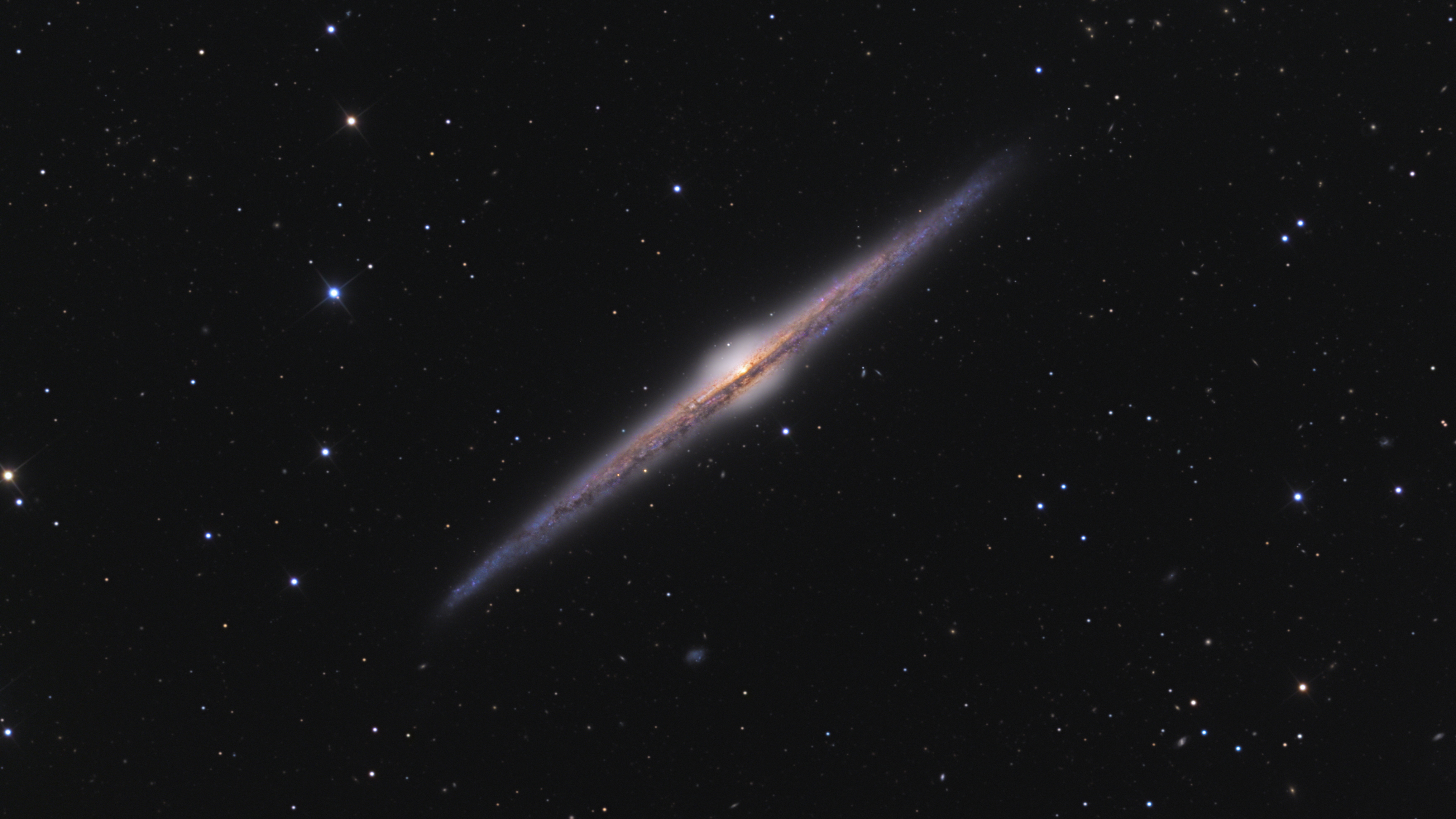 Великолепная спиральная галактика NGC 4565 видна с ребра с планеты Земля. Из-за тонкого профиля её часто называют галактика «Игла». Яркая галактика NGC 4565 – хороший объект для наблюдений на северном небе. Она находится в слабом, но элегантном созвездии Волосы Вероники. На этом четком цветном изображении виден центральный балдж галактики, пересеченный полосами поглощающей свет пыли, украшающими тонкую плоскость галактики.