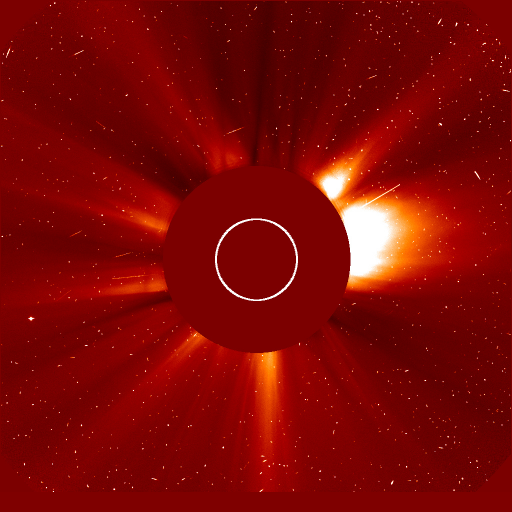 Вспышка балла: M6.5 от 11 Апреля. Фотография солнечного ветра в оптическом диапазоне. Иструмент LASCO/C2 на борту спутника SOHO