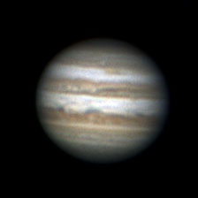 Вчера пробовал снимать Юпитер с ньютоном 150/750, при использовании двух барлоу SW 2х получается мыло, видимо нужна все-таки нормальная Барлоу 3-5 PAG от НПЗ. Ниже полученное изображение с одной барлоу 2х, масштаб конечно маленький.