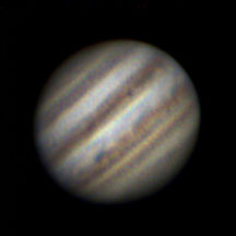Вчера пробовал снимать Юпитер с ньютоном 150/750, при использовании двух барлоу SW 2х получается мыло, видимо нужна все-таки нормальная Барлоу 3-5 PAG от НПЗ. Ниже полученное изображение с одной барлоу 2х, масштаб конечно маленький.